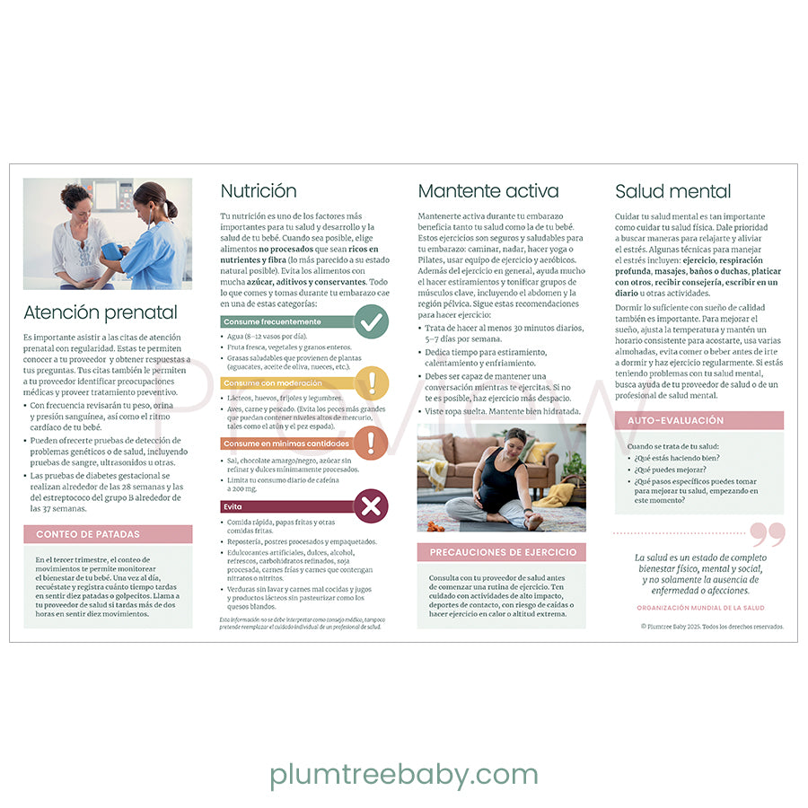 All new handout in English or Spanish! Equip your clients with essential knowledge and practical tips for a healthy pregnancy. This concise handout covers: